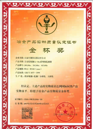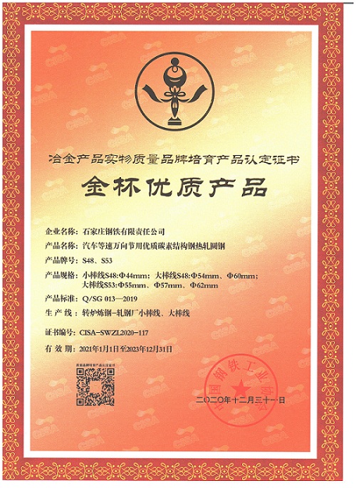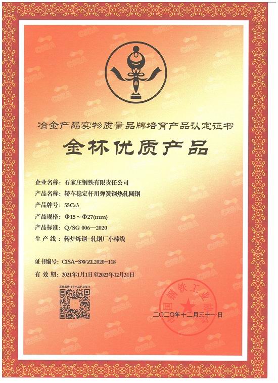 轎車穩定桿用彈簧鋼金杯獎                            汽車等速萬向節用優質碳素結構鋼熱軋圓鋼金杯獎